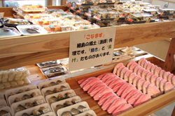 | 物産館では地元で水揚げされた新鮮な海産物や加工商品、地元の野菜や果物加工品などをお求め安い価格にて販売しております。 |